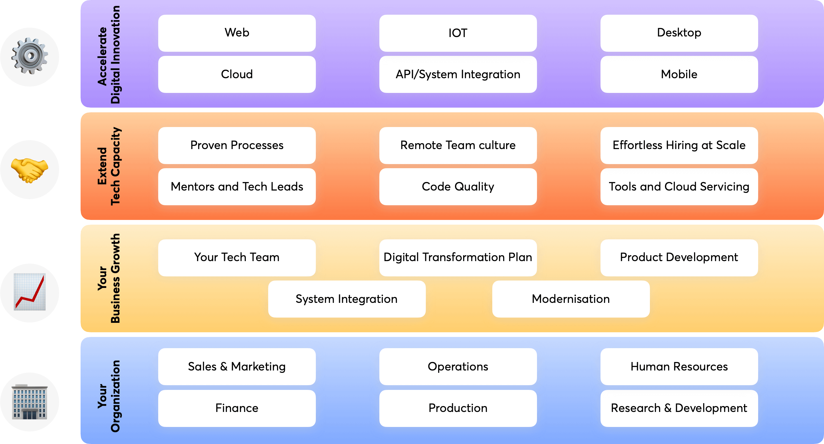 We’re also familiar with scores of languages and tools, and we invest heavily in staying on top of our game.